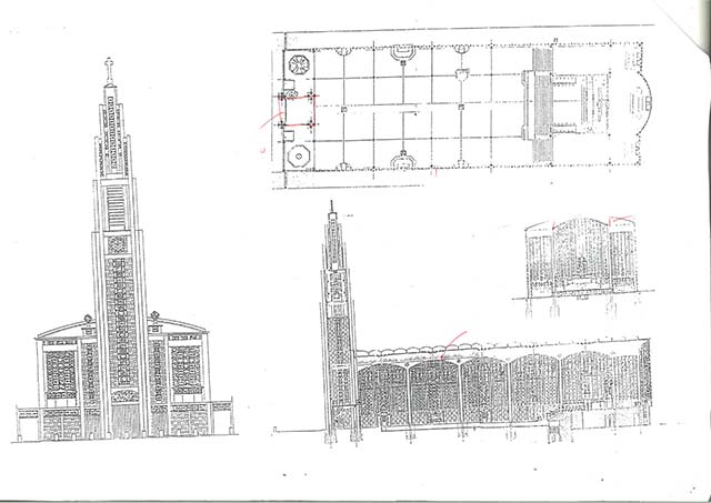 Coupole = espace inutilisé, façades : plaques boulonnées, colonnes avec angles, vitraux = intérieur lumineux, 4 ouvertures dans la coupole