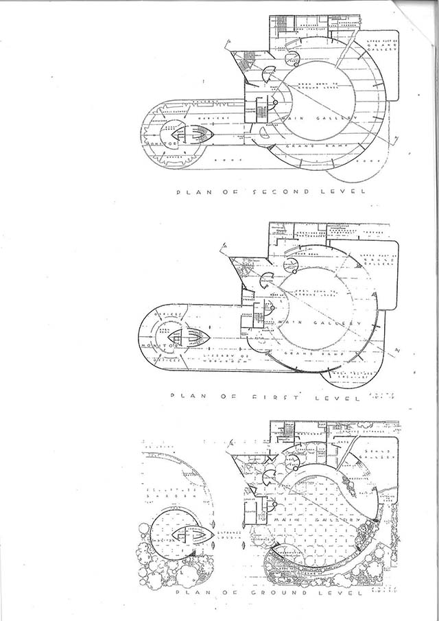 Forme circulaire de la salle : jeux éclairage, une partie paroi réfléchissante et l'autre évacuante du son, formes cornes de vaches, parlement
